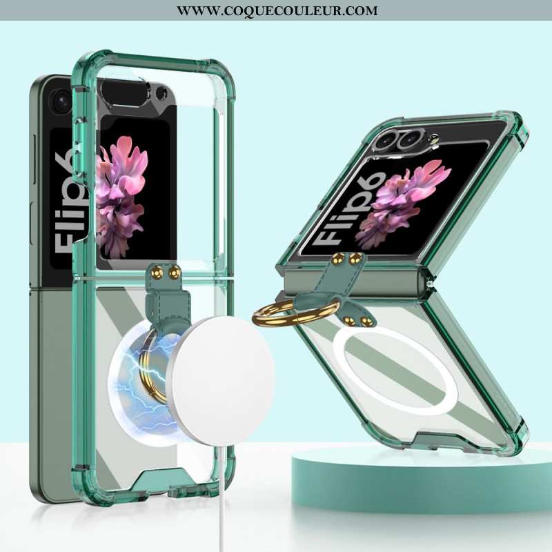 Coque GKK pour Samsung Galaxy Z Flip6 5G Transparente Anneau-Support Compatible MagSafe GKK