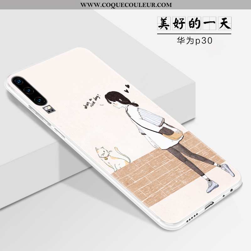 Housse Huawei P30 Légère Charmant Étui, Étui Huawei P30 Fluide Doux Blanc Blanche