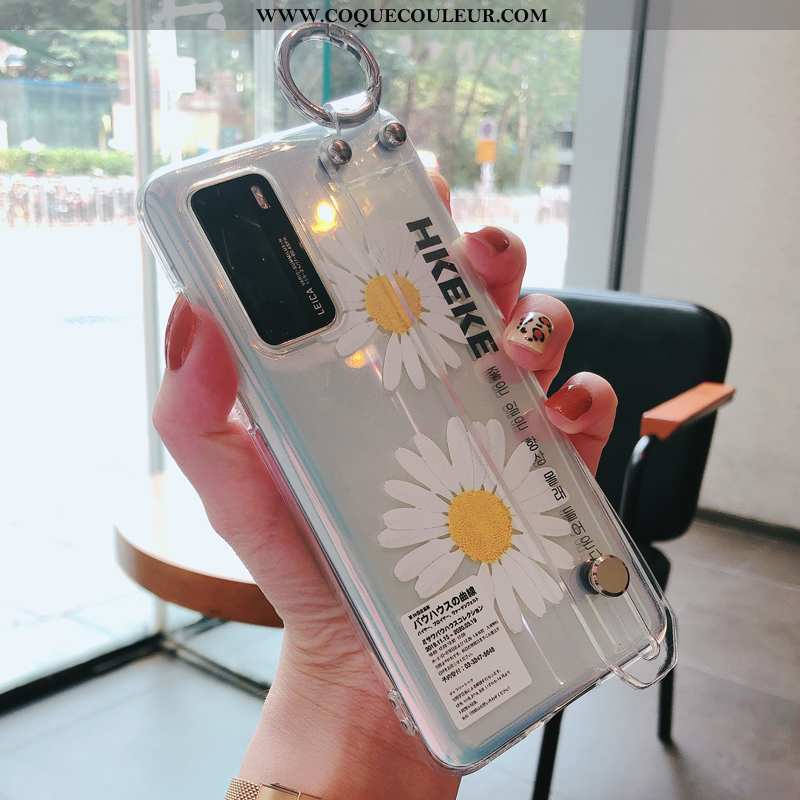 Coque Huawei P40 Silicone Petite Marguerite Transparent, Housse Huawei P40 Protection Frais Rose