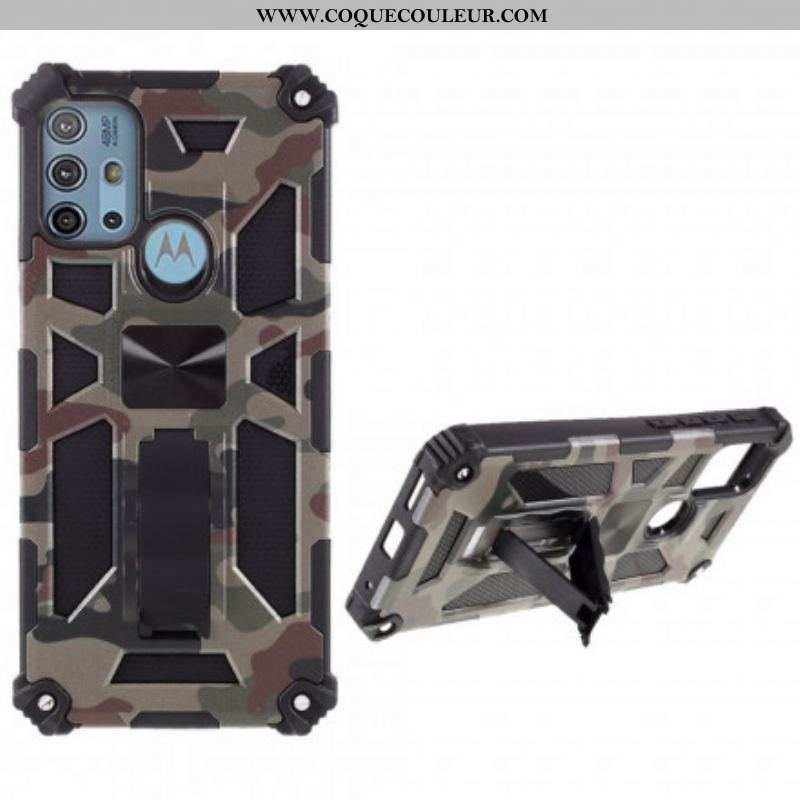 Une coque Camouflage hybride ultra résistante qui vient avec un support amovible pour sécuriser votre Moto G30 / Moto G10.