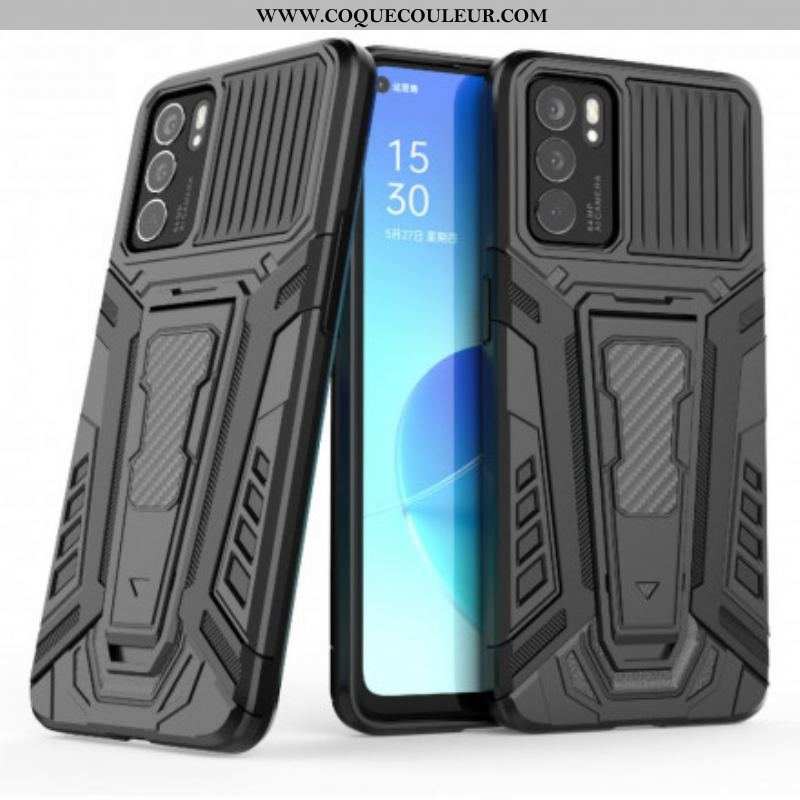 Une coque ultra résistante pour le Oppo Reno 6 5G qui vient avec un support amovible permettant deux positions mains libres.