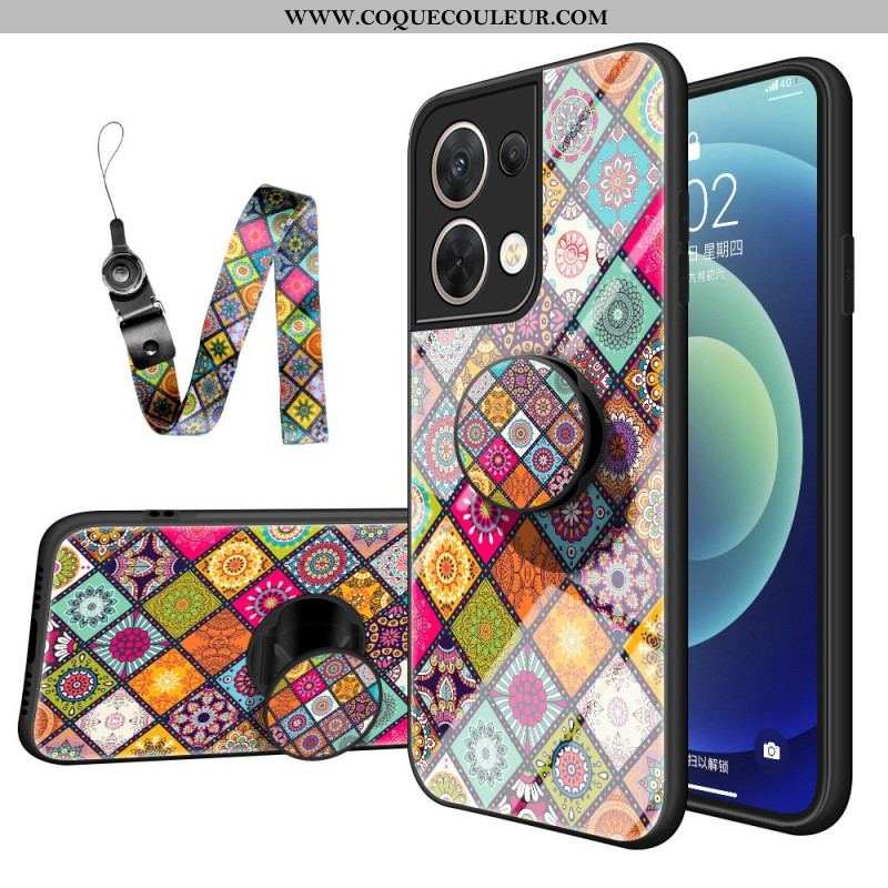 Choisissez cette superbe coque multi-fonctions au design patchwork pour votre précieux Oppo Reno 8.