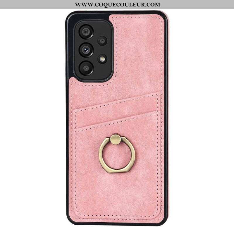 Votre Samsung Galaxy A53 5G est parfaitement protégé avec cette coque effet cuir vintage munie d'un anneau-support et de porte-cartes.