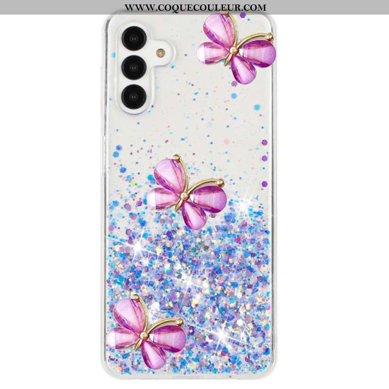 Cette coque pour Samsung Galaxy S24 FE se distingue par son élégance, avec des décorations en époxy et trois magnifiques papillons.