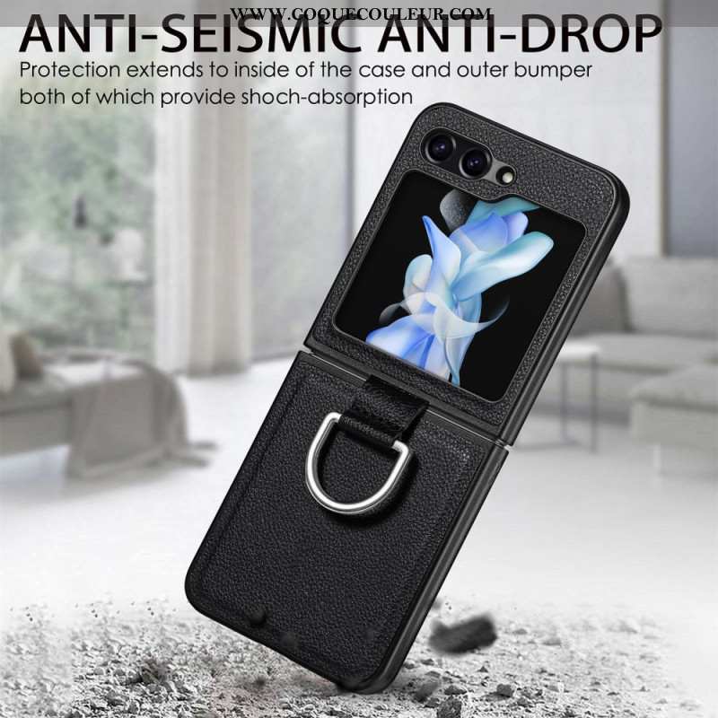 Choisissez cette coque dont le style cuir et l'anneau permettent d'utiliser votre Samsung Galaxy Z Flip 5 dans les meilleures conditions.