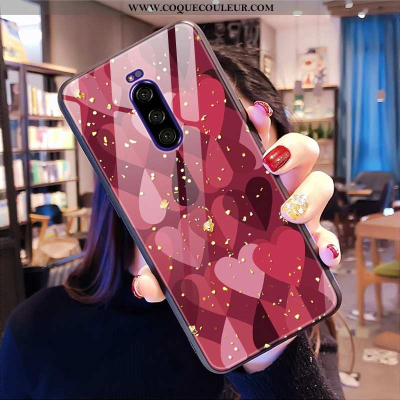 Étui Sony Xperia 1 Verre Téléphone Portable Rose, Coque Sony Xperia 1 Net Rouge Rose
