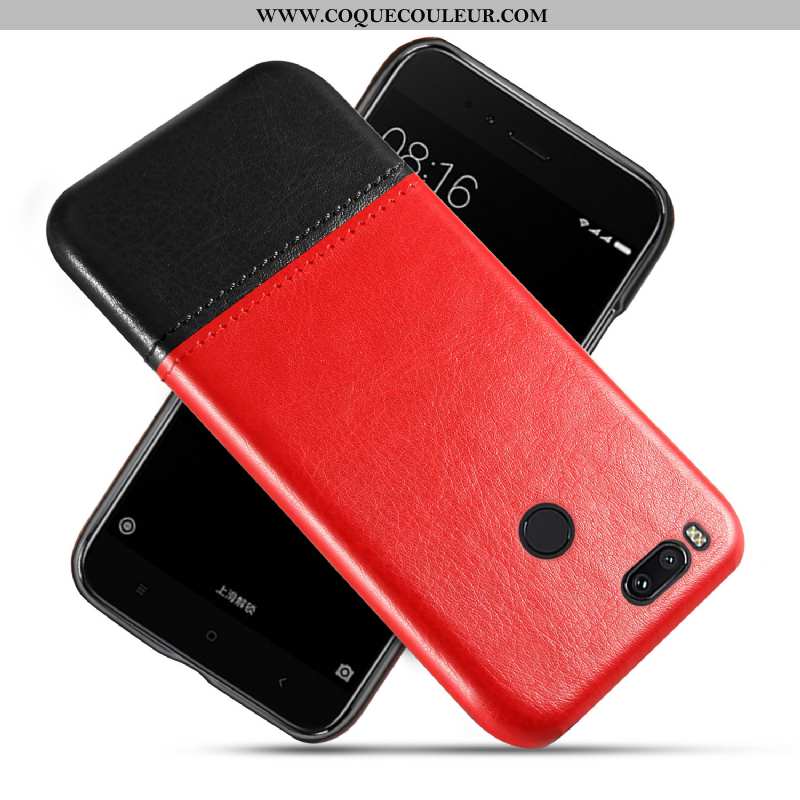 Coque Xiaomi Mi A1 Cuir Rouge Incassable, Housse Xiaomi Mi A1 Protection Difficile