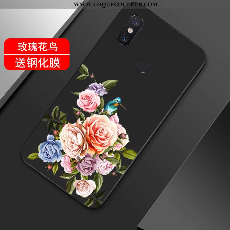Coque Xiaomi Mi Max 3 Fluide Doux Petit Fleur, Housse Xiaomi Mi Max 3 Silicone Vent Noir