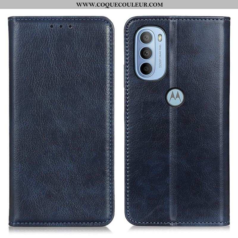 La housse de style Flip Cover (fermoir intégré à la couverture) en cuir fendu mat sécurise finement le Moto G41 / G31 au quotidien.
