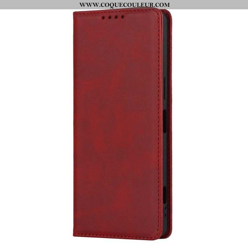 - Style flip cover avec fermoir magnétique intégré à la couverture