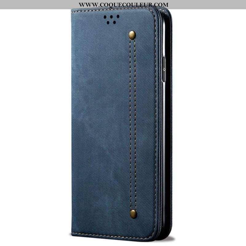 Protégez de façon personnelle votre iPhone 14 avec cette flip cover en jeans qui se distingue par sa résistance aux intempéries.