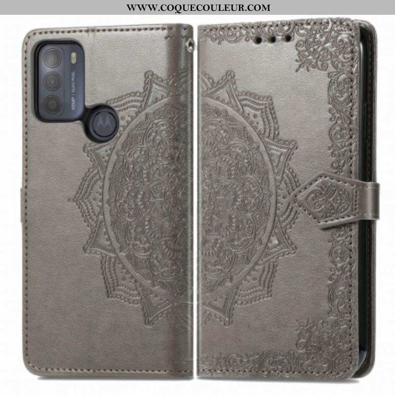 Une superbe housse pour le Moto G50 au design d'un mandala moyen age style soleil qui donne de la couleur à votre mobile.