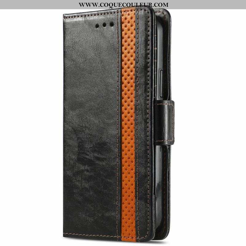 La housse en simili cuir bicolore pour votre Samsung Galaxy S20 Ultra fournie protection, emplacements pour cartes et double fermoir.