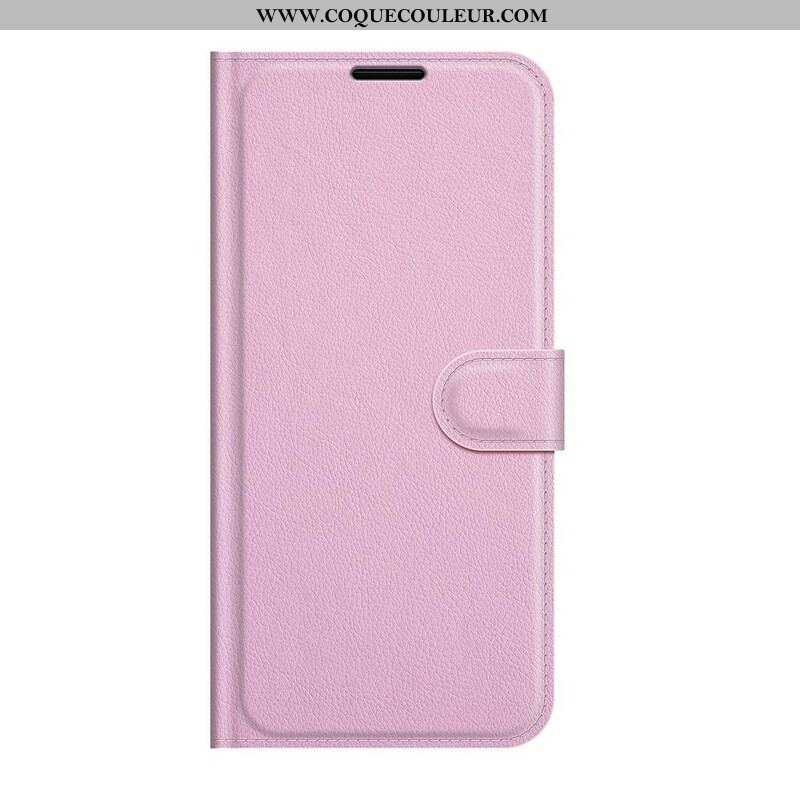 La housse Effet Cuir Litchi Classique protège parfaitement le iPhone 13 Mini et sert d'accessoire pour la vie quotidienne grâce à ses fonctions portefeuille.