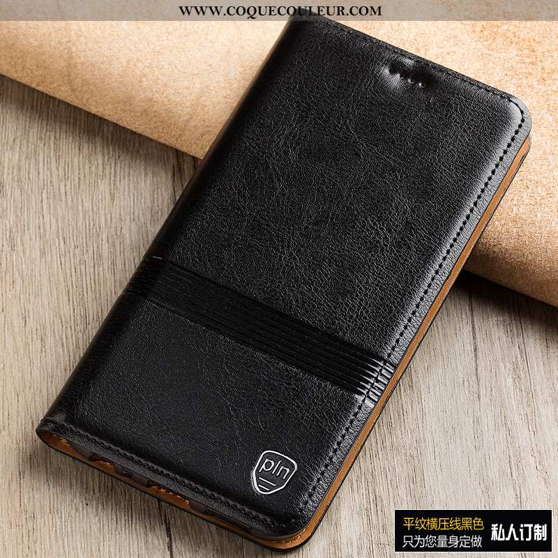 Housse Moto G7 Power Protection Téléphone Portable Noir, Étui Moto G7 Power Cuir Véritable Coque Noi