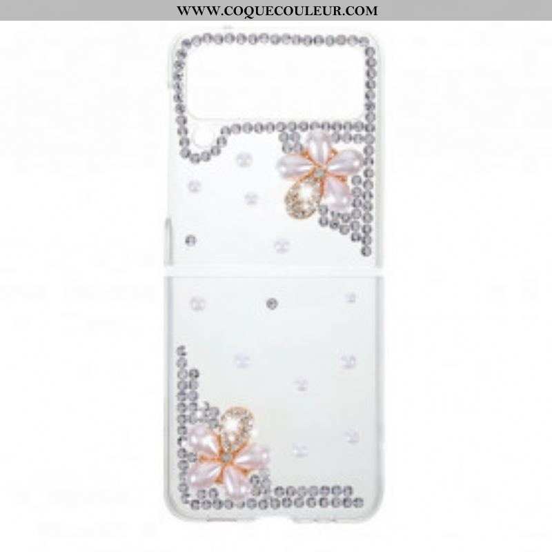 Coque Samsung Galaxy Z Flip 3 5G Transparent et Pierres Précieuses