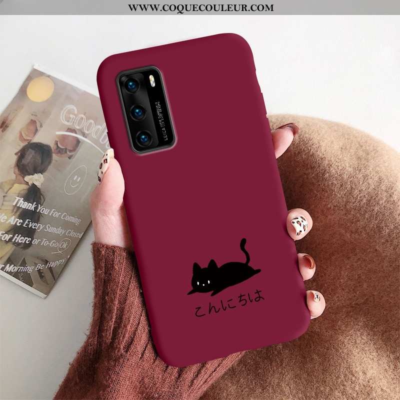 Housse Huawei P40 Créatif Silicone Fluide Doux, Étui Huawei P40 Ultra Incassable Bordeaux