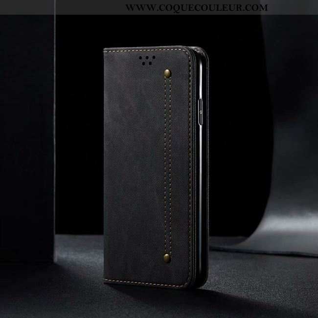 Coque Oppo A91 Cuir Véritable Noir, Housse Oppo A91 Protection Étui Noir