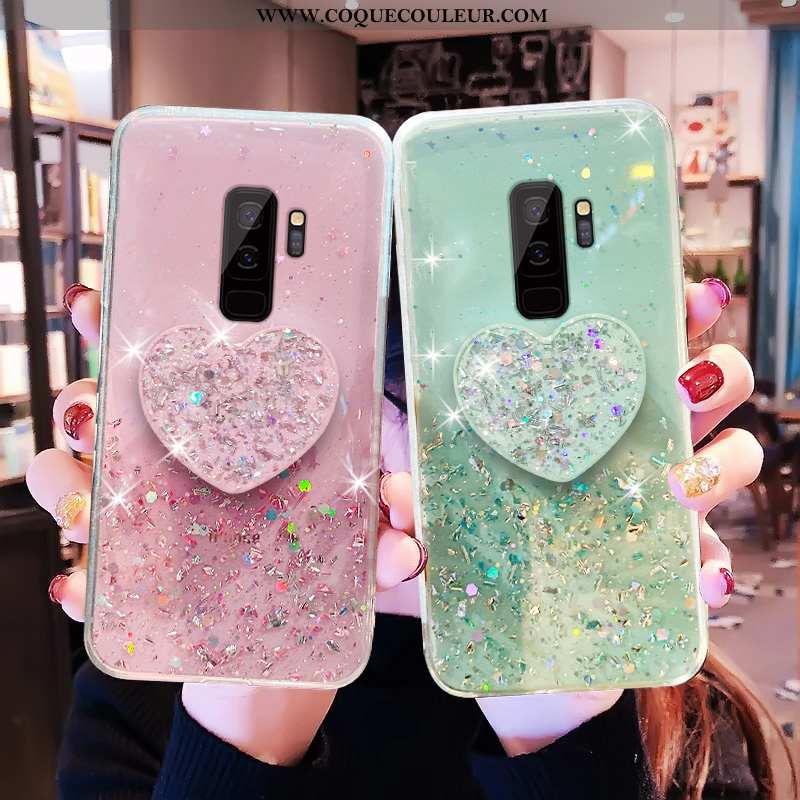 Étui Samsung Galaxy S9+ Verre Net Rouge Rose, Coque Samsung Galaxy S9+ Personnalité Tempérer Rose