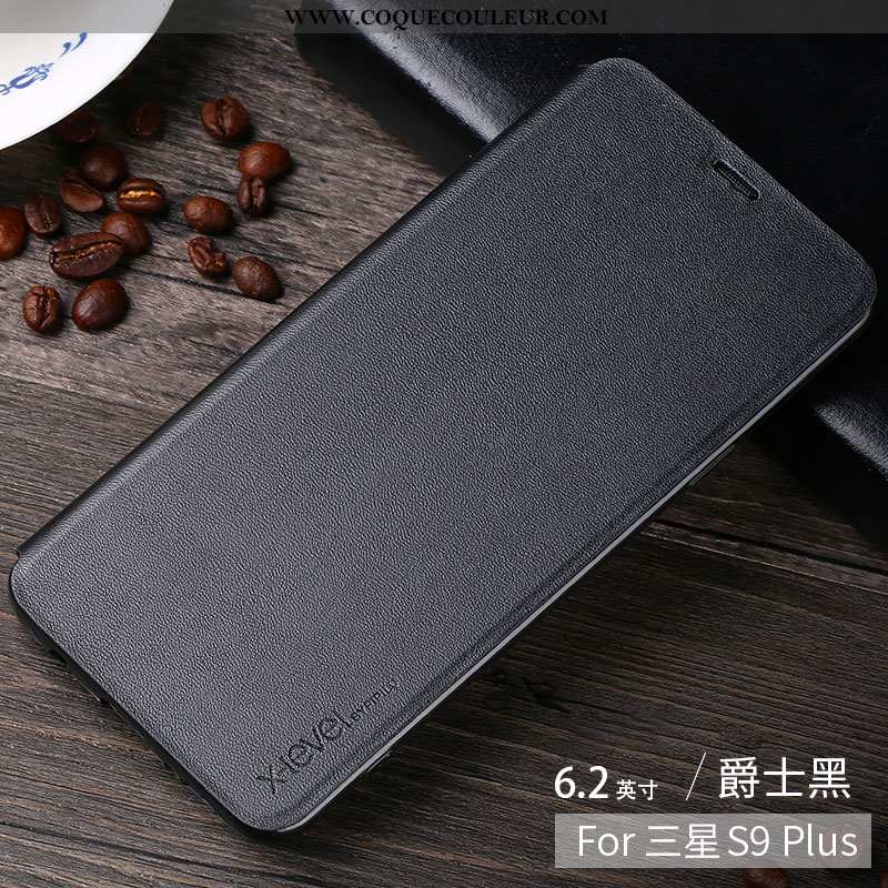 Housse Samsung Galaxy S9+ Ultra Personnalité Noir, Étui Samsung Galaxy S9+ Légère Cuir Noir